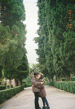 Kissing under the tall pine trees via Appia Antica, Rome. |