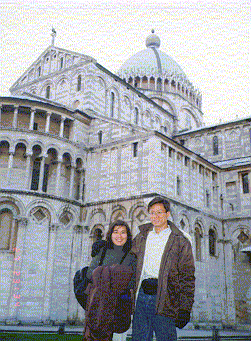 A memorable photo at the Field of Miracles, in front of the Bascilica in Pisa. |