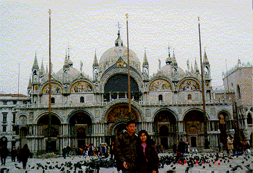 One of the reasons we chose to go to Italy was because Italy has many beautiful churches and magnificient art works. This photo was taken outside San Marco Basilica at Venice. |