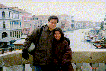 Our romantic honeymoon in Italy. We especially like the charming ambience of Venice. Here we are at Rialto Bridge, where Marco Polo set sail. |