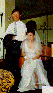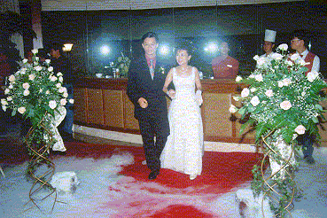 | Our wedding dinner at Traders' Hotel. We look and feel very glamorous that evening as all attention was centred on us. Wow, just like a movie star! | ![]() |